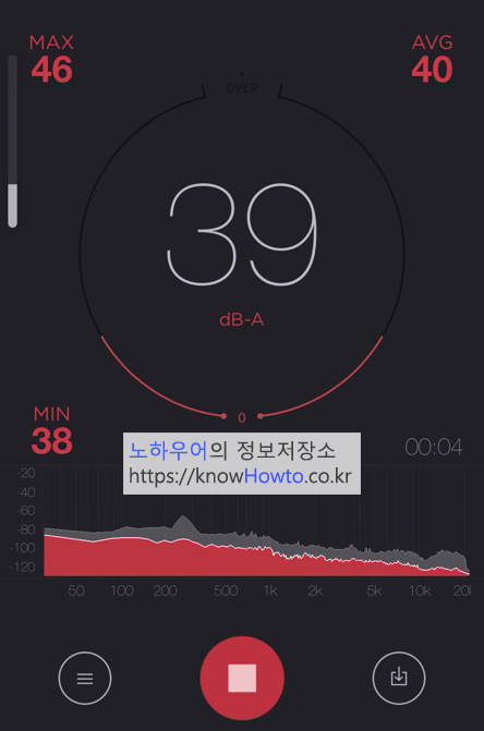 40db 정도의 소음이 측정되었으며 일반적인 실내 방 안에서의 환경 기준