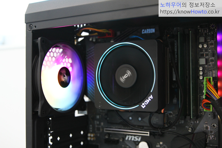 게다가 예상대로 측면 투명 아크릴과 은은한 RGB팬은 분위기를 더해줍니다.