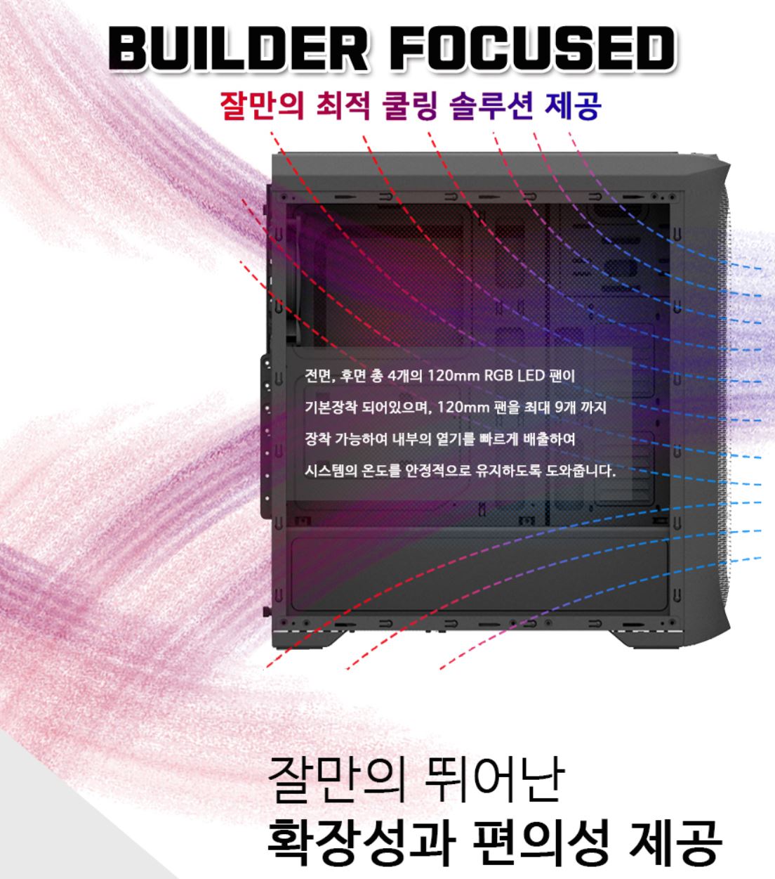 [ 4개의 RGB 팬 제공 및 추가 팬 설치로 최대 9개의 팬 설치 가능 ]