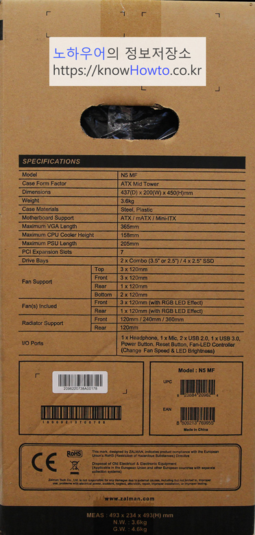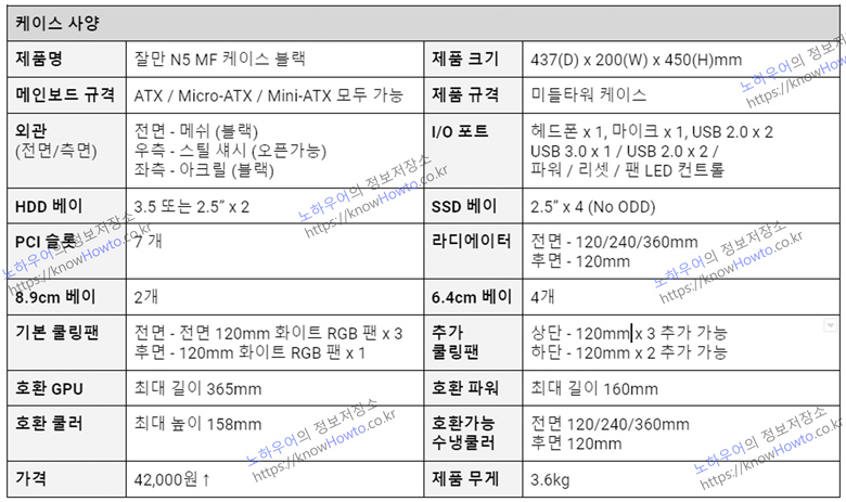 잘만 N5 MF 미드타워 케이스의 스펙을 다시 한번 요약해 봅니다.
