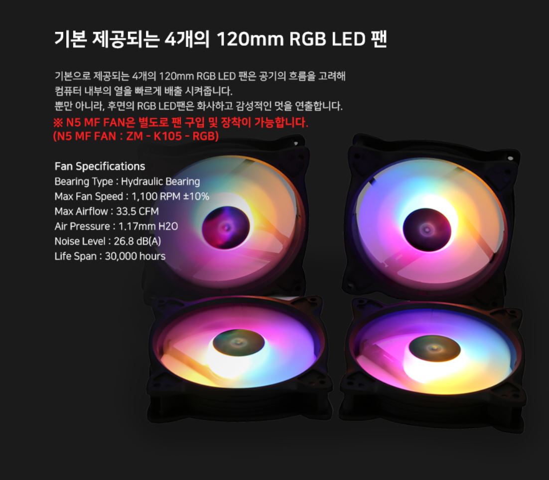 레인보우 RGB 튜닝이 가능한 잘만 N5 MF 데스크탑 컴퓨터케이스