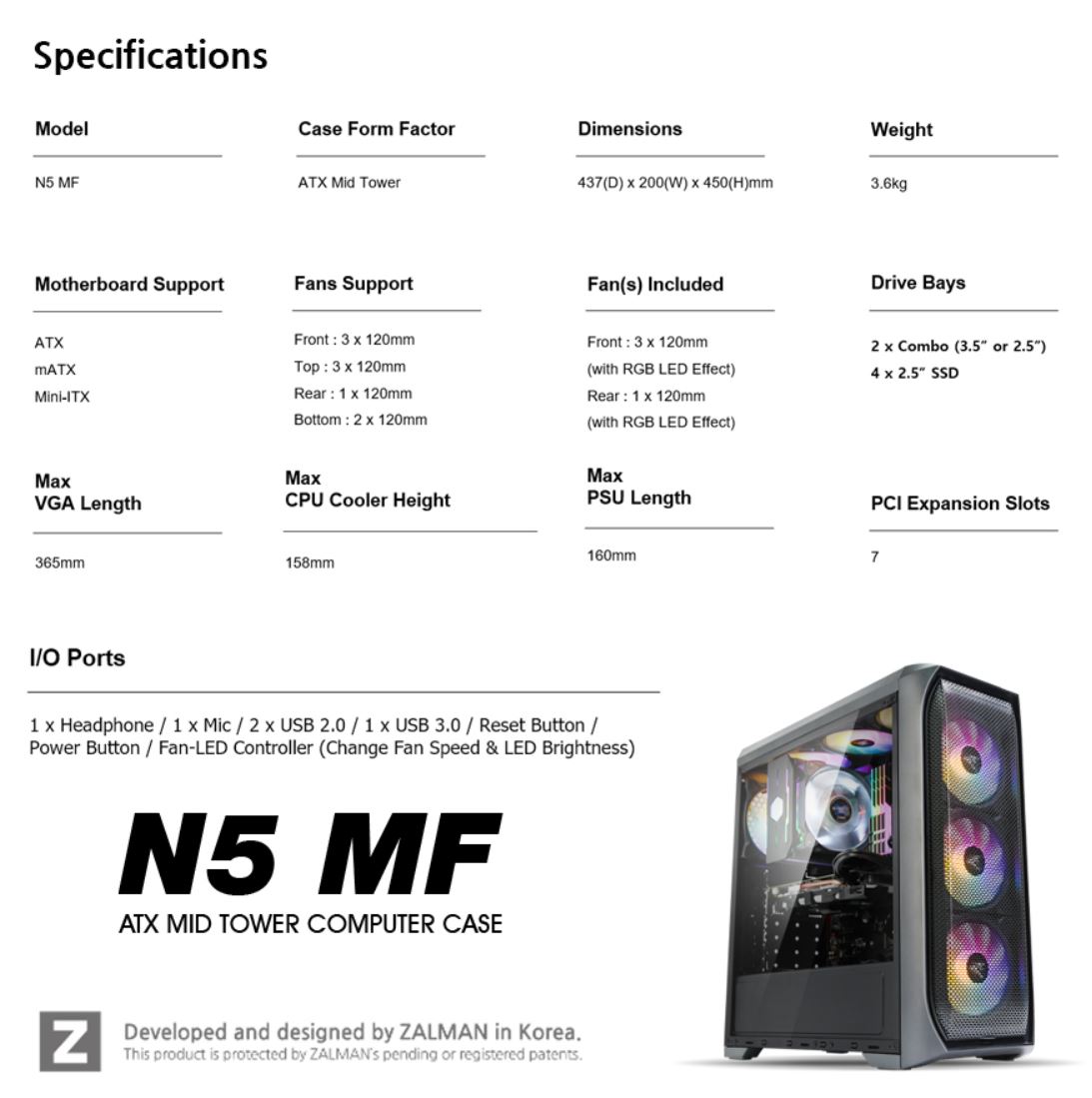 [ 잘만 N5 MF 케이스 - 스펙 요약 ]